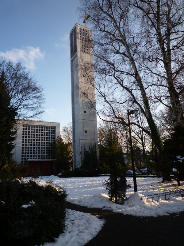 2009.12-23_011_klein Zurück Weiter Veröffentlicht 29. April 2018 am 600 × 800 in Außenansichten Apostelkirche im Schnee, Sicht aus Richtung Juhei/Kindergarten, 23.12.2009, © Beate Sachs