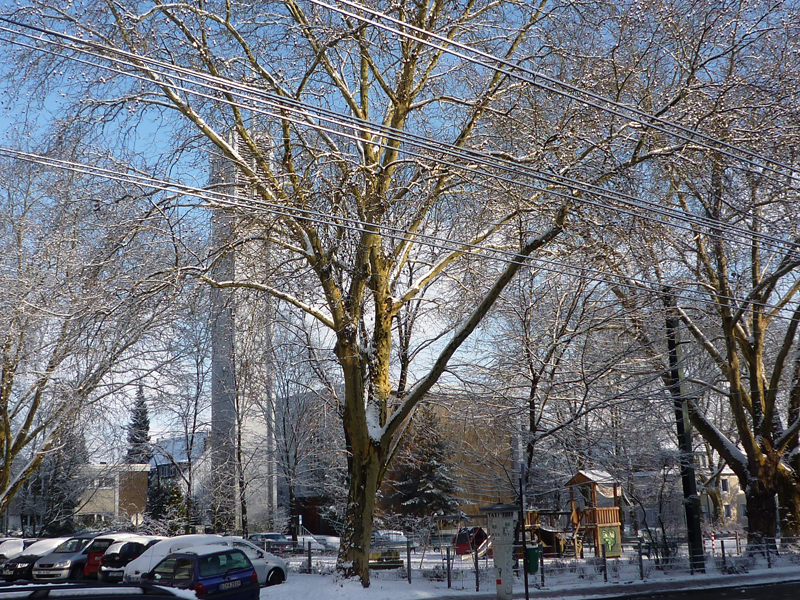 2010.01-30_001_klein Zurück Weiter Veröffentlicht 29. April 2018 am 800 × 600 in Außenansichten Apostelkirche im Schnee, 30.01.2010, © Beate Sachs